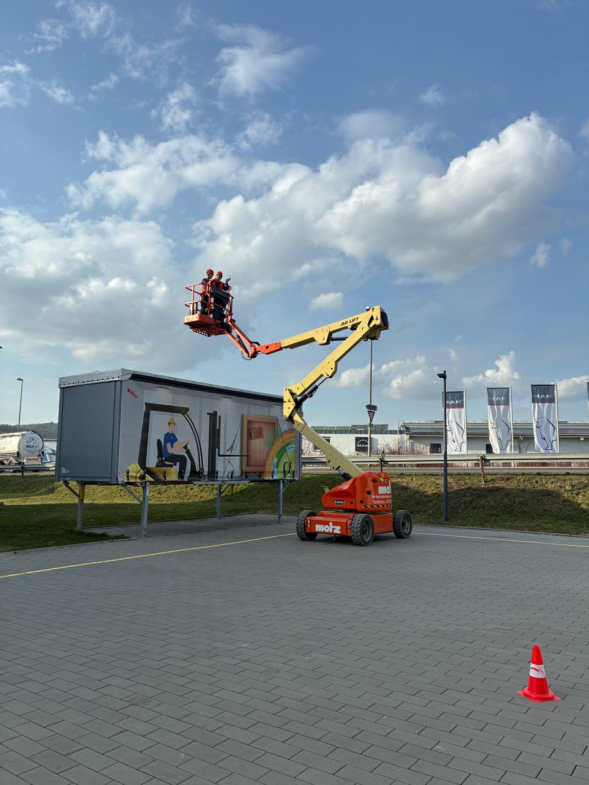 Um bestens auf Arbeiten in luftigen Höhen vorbereitet zu sein, finden regelmäßig Hubarbeitsbühnen Schulungen statt um sicher und geübt auch in über 5 Metern für Spannung zu sorgen.